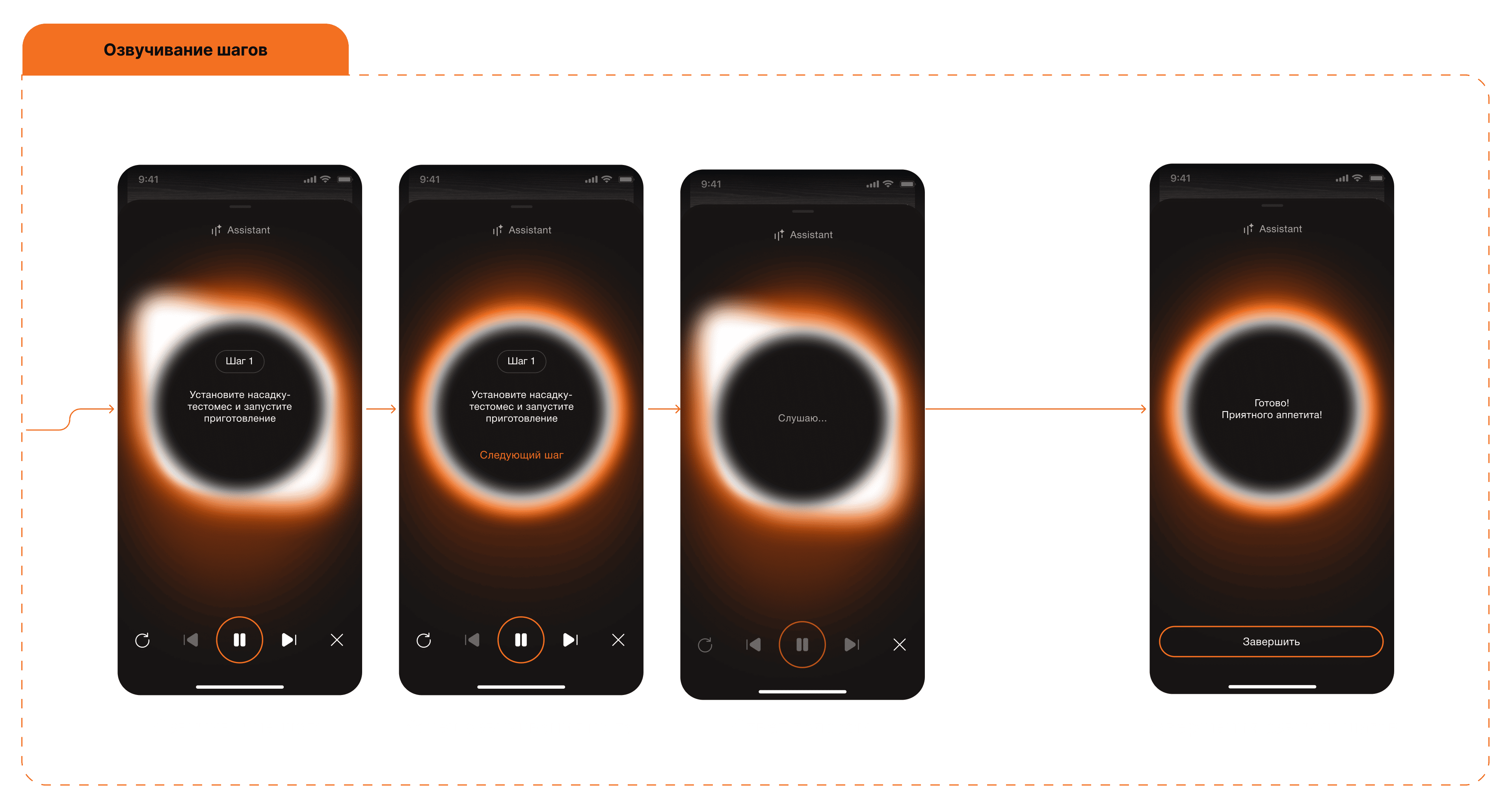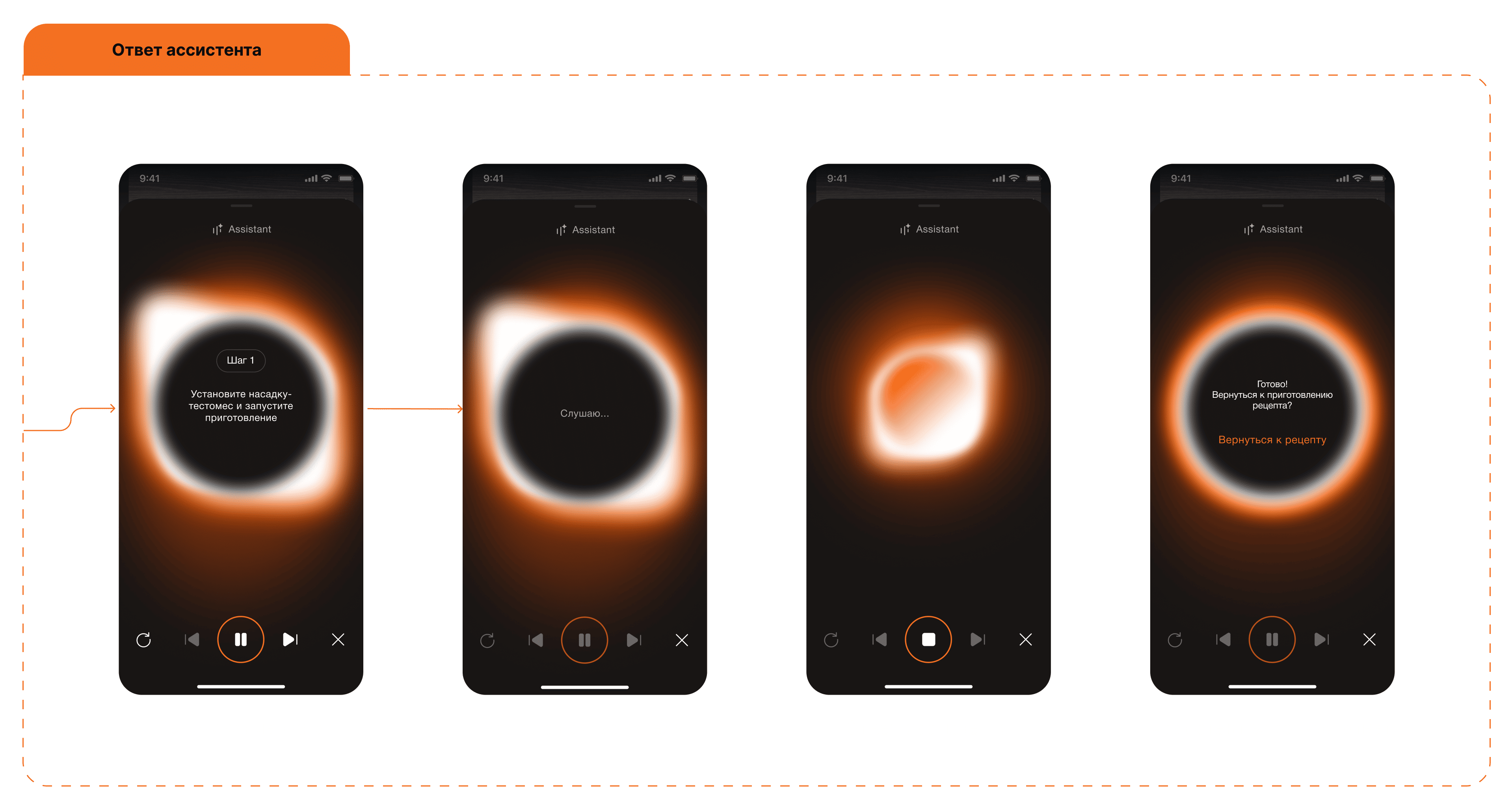Также мы интегрировали прогресс-бар в основную кнопку ассистента, чтобы пользователь визуально понимал, на каком этапе готовки находится