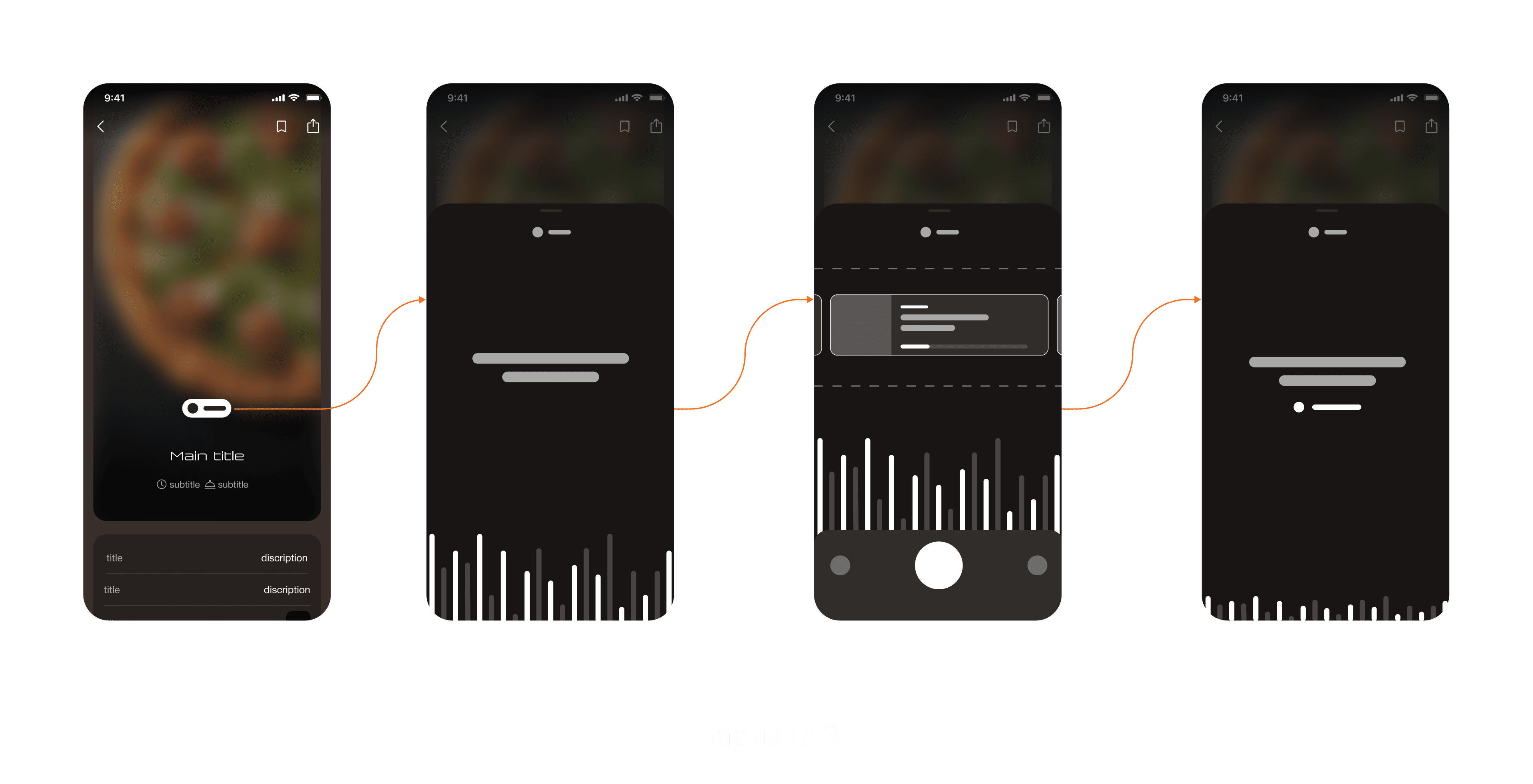 После этапа исследования, я перешел к быстрому прототипированию. Обычно, на этом этапе я делаю быстрые наброски экранов и сценариев взаимодействия с голосовым ассистентом, чтобы визуализировать идею и проверить логику
